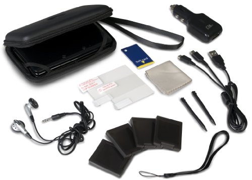 The Nintendo 3DS is the first of it's kind in handheld 3D gaming. The 12 in 1 Adventure Pack for the Nintendo 3DS has everything you need to protect, recharge and travel with your system in style. In addition to the stylish EVA Case that secures your 3DS, games and accessories, the 12 in 1 Adventure Pack includes 1 Screen Protector Kit with wipe, 1 Set of Stereo Ear Buds, 1 USB Charging Cable, 1 USB Car Adapter, 2 Plastic Styluses, and 4 3DS Game Cases. So with the 12 in 1 Adventure Pack from CTA Digital you'll be able to maintain your 3DS, games and accessories, while keeping them protected in style. Package includes: (1) EVA carrying case with strap and inner pocket. (4) Game cartridge cases. (2) 3DS Plastic Styluses. (1) USB car adapter. (1) USB charging cable. (1) Screen protector kit with cloth wipe. (1) Set of stereo ear buds.